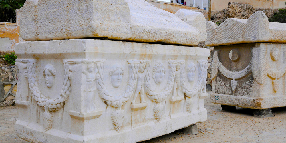 It is located above Sedra hill between the current Muslim cemetery area known as Al-Amoud and the Kom Al-Shqafa archaeological plateau.